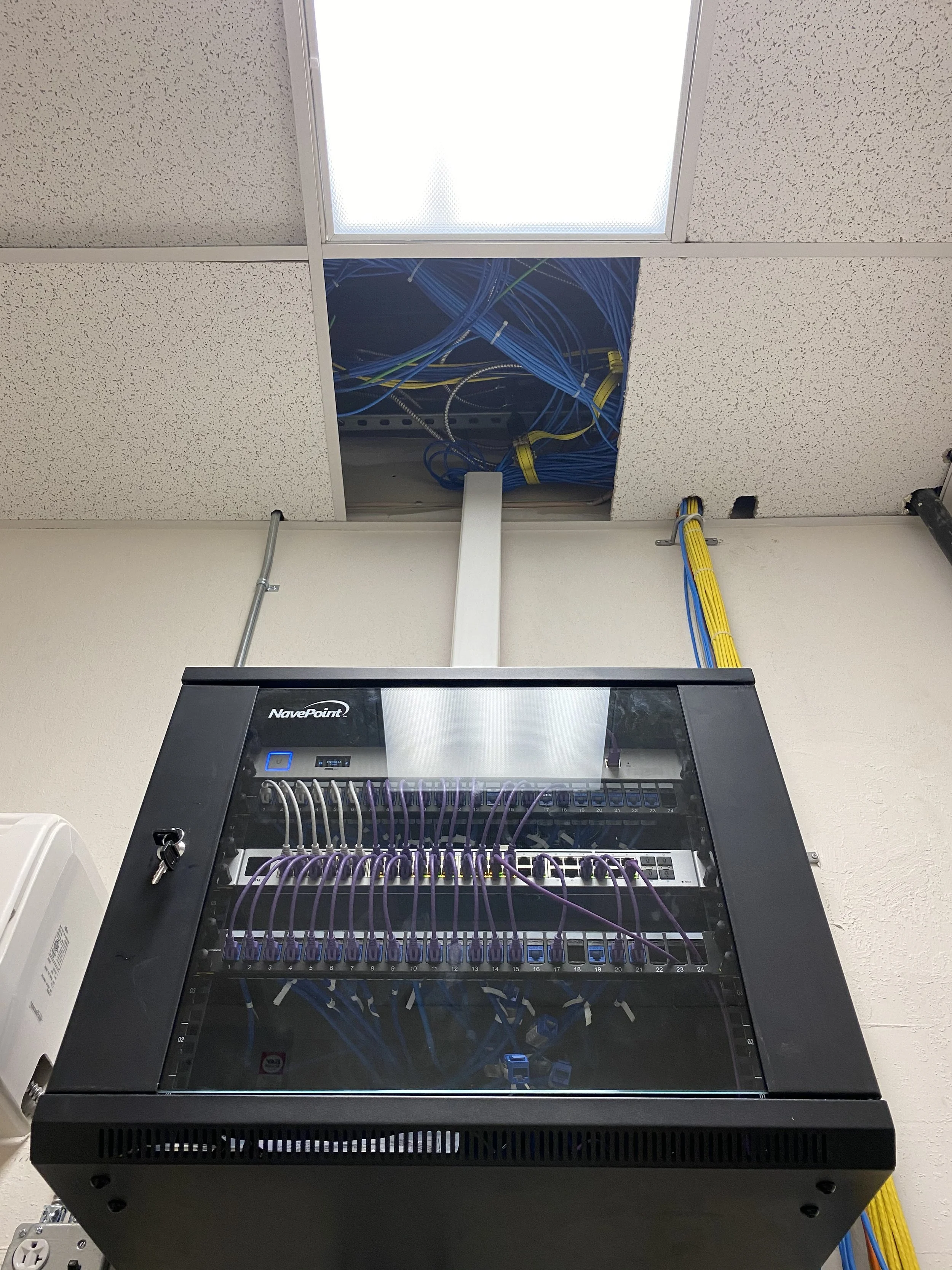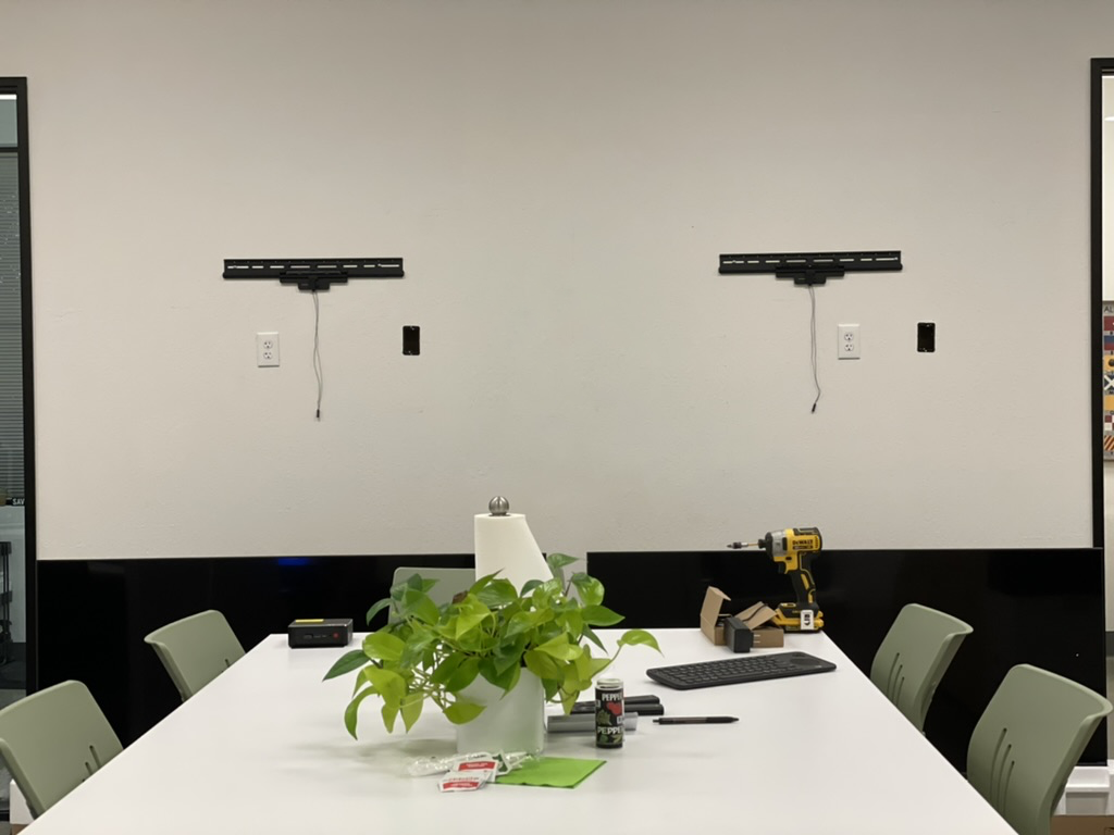 Smart boards with wireless Apple and PC connectivity. Server running all PCs with live sales performance.